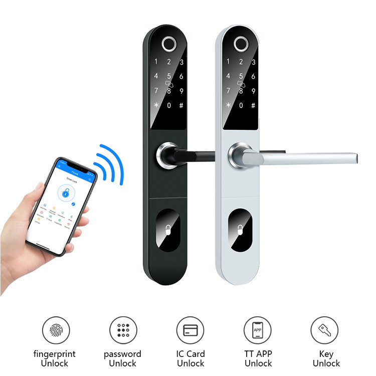 ► 6 طرق لإلغاء القفل: الوصول إلى تطبيق WiFi ، والوصول إلى تطبيق Bluetooth ، وفتح بصمة الإصبع ، وفتح البطاقة ، وفتح رمز PIN ، وفتح المفتاح الميكانيكي ؛